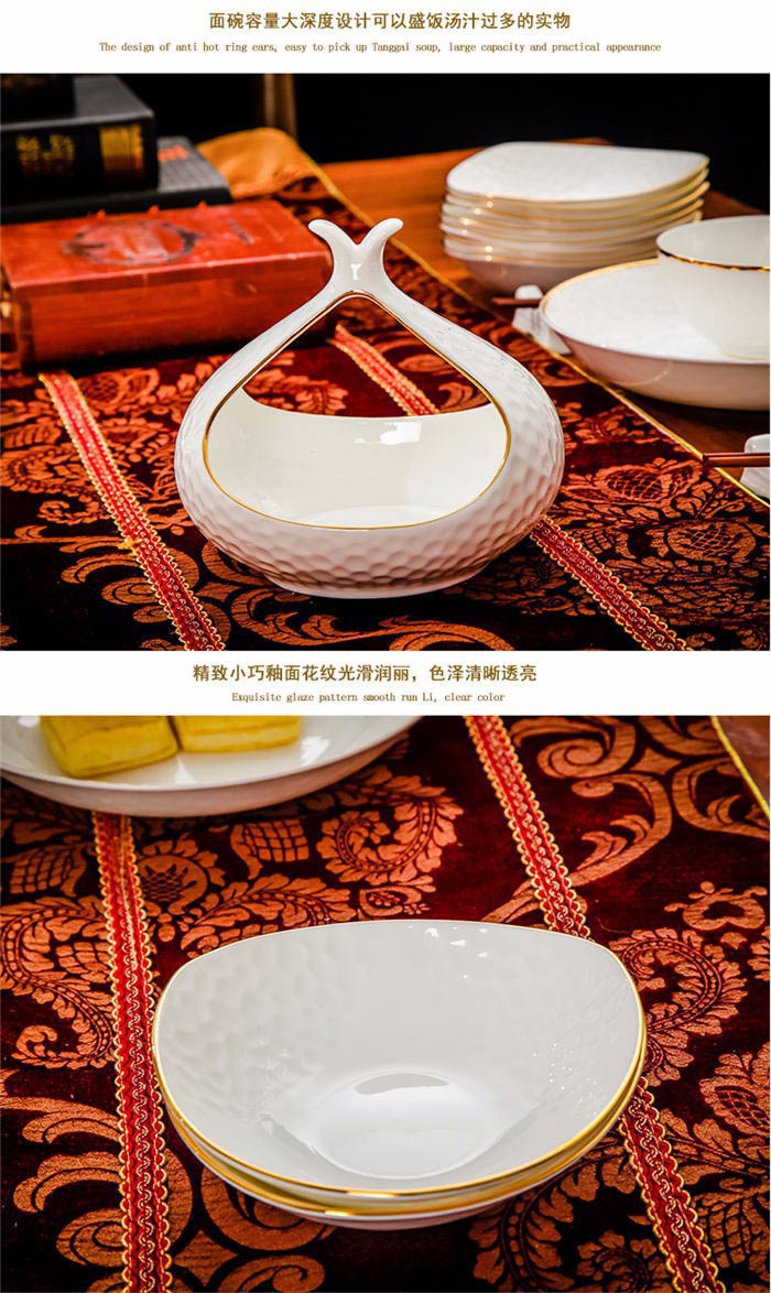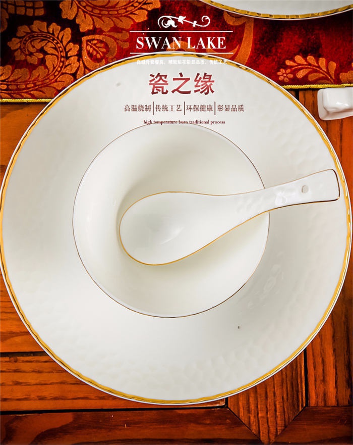 60頭水立方,一個湯煲,一個魚盤,一個十寸圓盤,一個飯勺,一個花籃,一個牙簽筒,四個面碗,十個4.5寸飯碗,十個三角骨碟,十個八寸盤,十個調(diào)羹,十個筷子架。